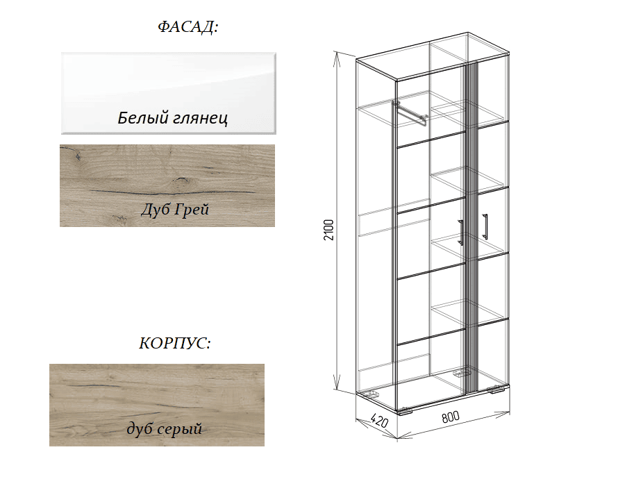 № 1 Шкаф от прихожей Бостон белый глянец