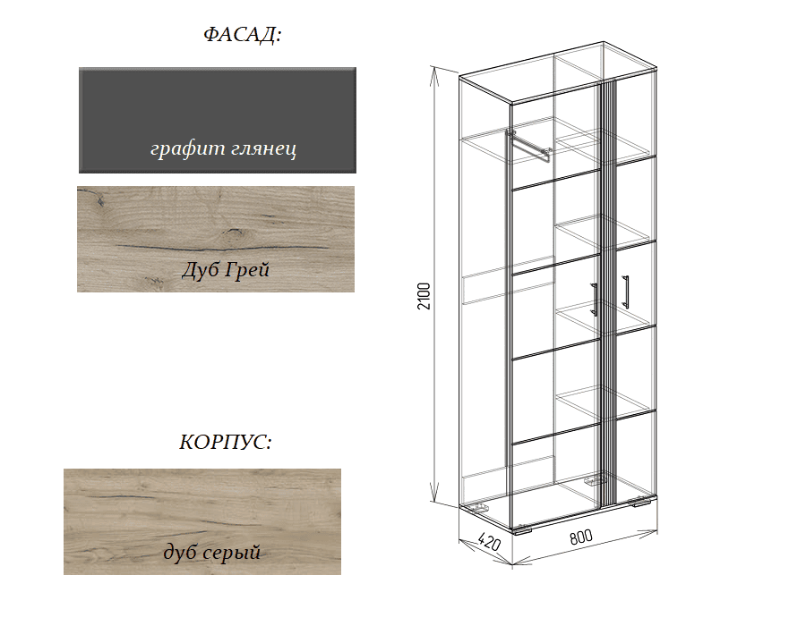 № 1 Шкаф от прихожей Бостон графит глянец