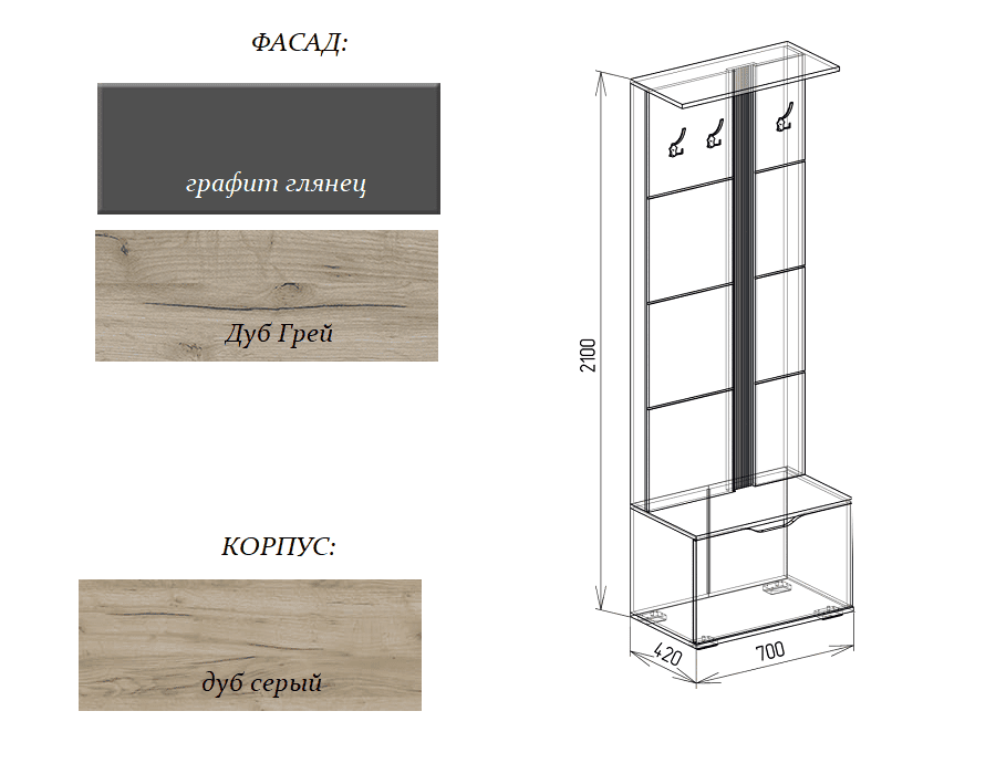 № 2 Вешалка 0,7 от прихожей Бостон графит глянец
