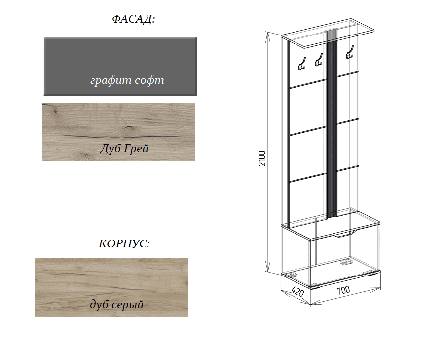 № 2 Вешалка 0,7 от прихожей Бостон графит софт