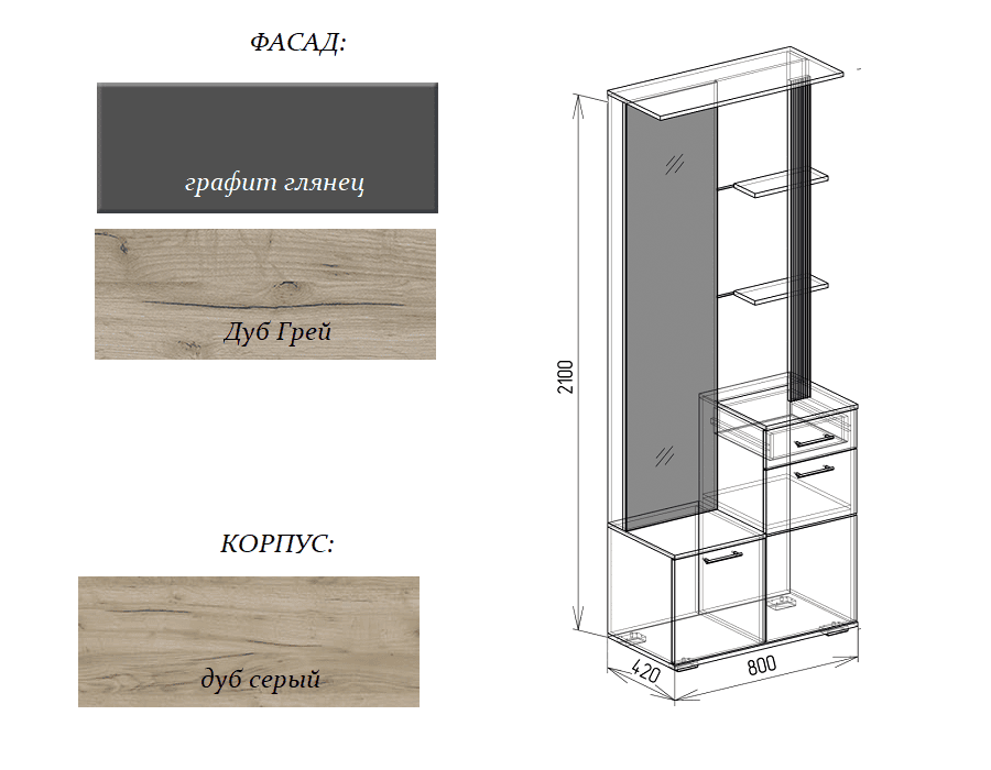 № 4 Зеркало 0,8 от прихожей Бостон графит глянец
