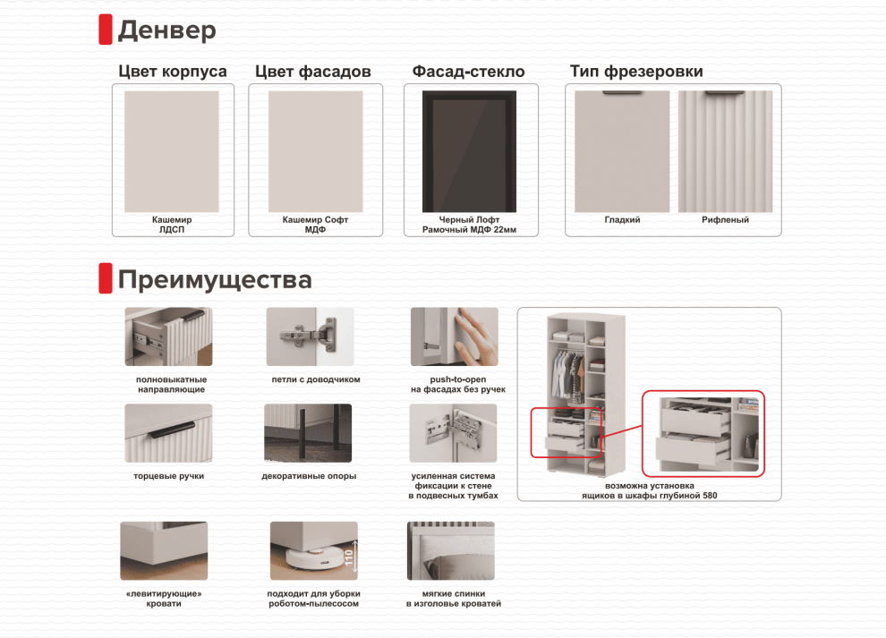 "левитирующие" кровати, мягкие спинки в изголовье кроватей, подходит для уборки роботом-пылесосом (высота ниши -110мм)
