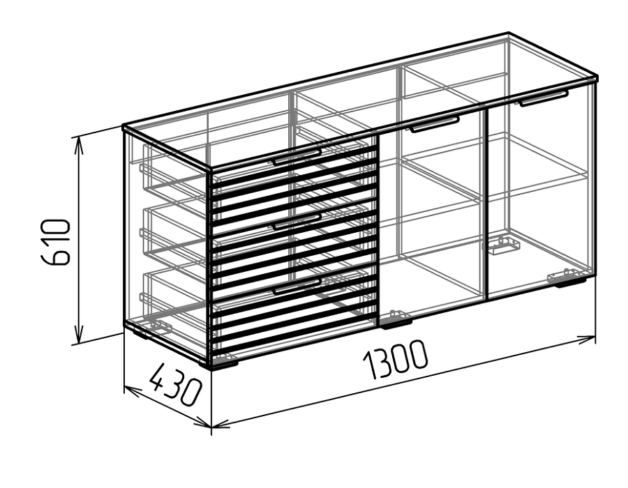 в ящиках полновыкатные направляющие, петли с доводчиком