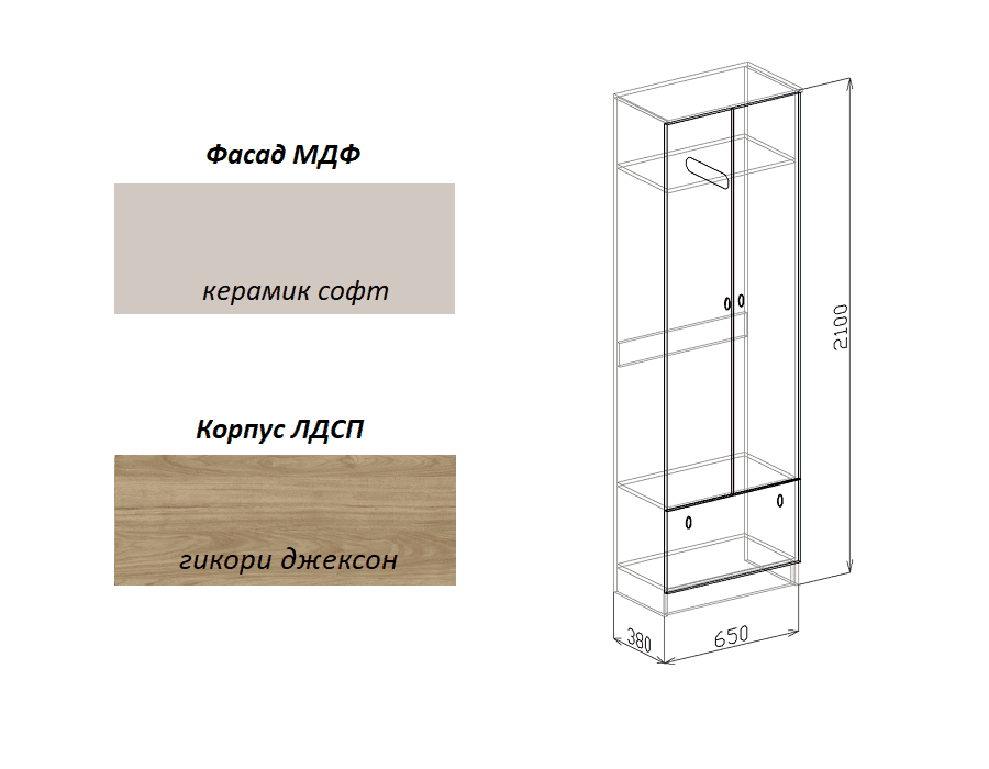 Шкаф 2х от прихожей София керамик софт
