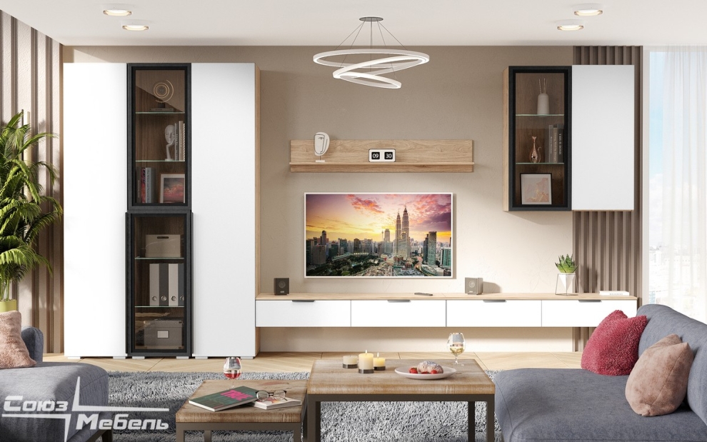 Стенка в гостиную Мегаполис бланж софт